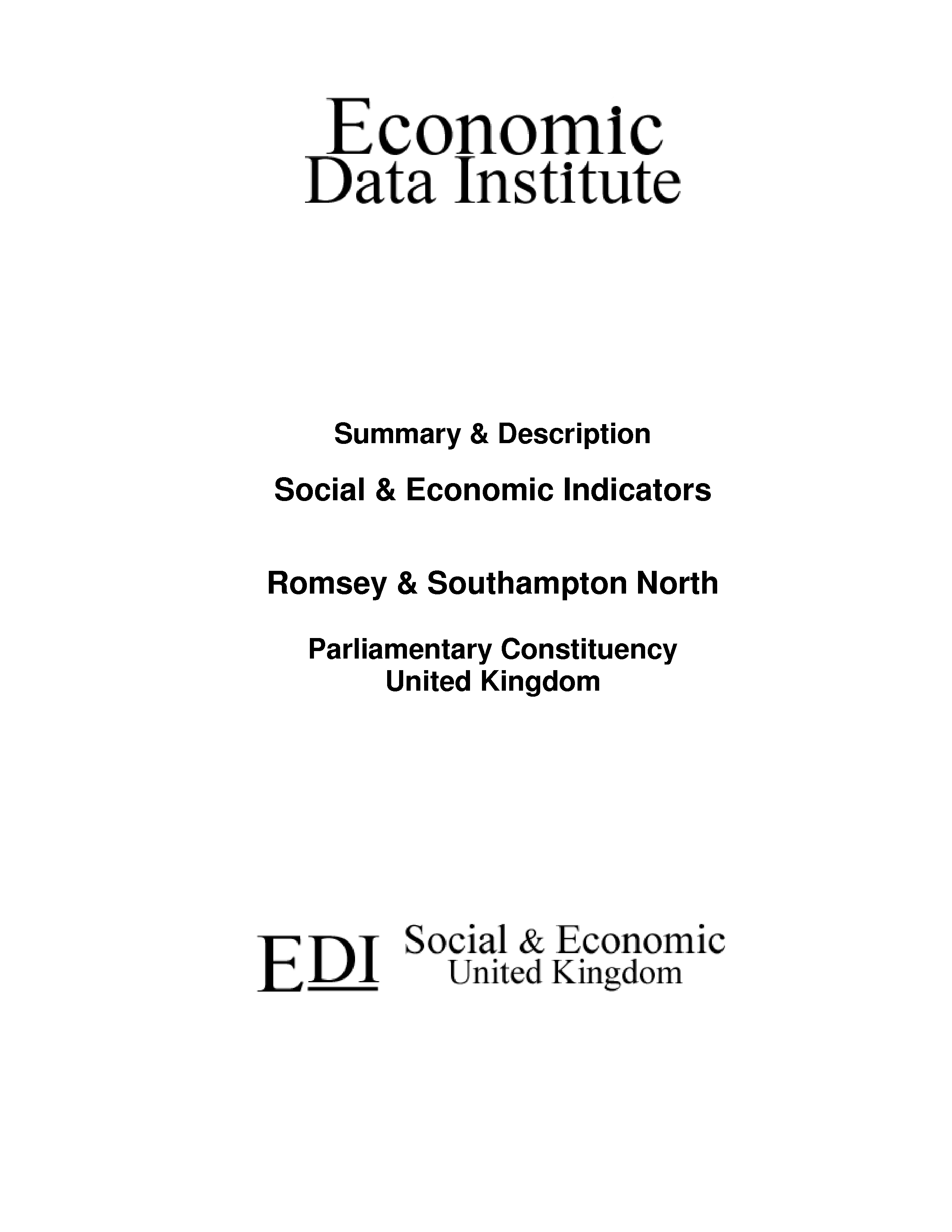 Romsey & Southampton North Parliamentary Constituency Social & Economic Indicators Reference Database : see descriptive Details here.